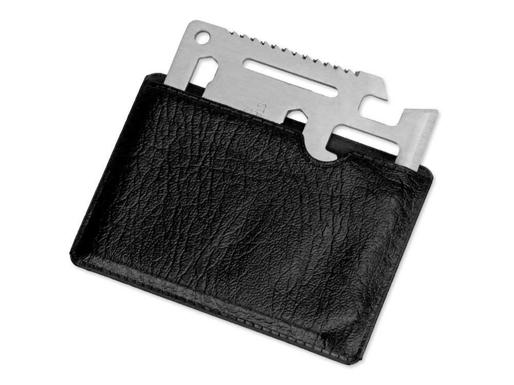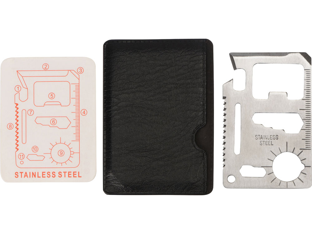 Мультиинструмент Helper mini в виде карты объединяет в себе 10 различных приспособлений: консервный нож, лезвие, плоскую отвертку, линейку, открывалку для бутылок, гаечный ключ на 4 различных размера головок болтов, ключ для барашковых гаек, пила, транспортир, гаечный ключ на 2 размера. Мультиинструмент выполнен из нержавеющей стали, что обеспечивает легкость, прочность и долгий срок эксплуатации Helper mini. Карту можно подвесить на брелок или карабин (не идут в комплекте), продев их сквозь специальное отверстие. Для хранения прилагается специальный чехол из искусственной кожи (ПУ), который не даст острым краям мультиинструмента нанести ущерб вашей одежде или содержимому сумки, а также защитит Helper mini от загрязнений. Чехол плотно облегает мультиинструмент, имеет удобный крой и выемку для пальца, поэтому вытаскивать его удобно и легко. - нержавеющая сталь, стойкая к коррозии и механическим повреждениям - 10 функций - чехол удобного кроя из искусственной кожи защитит мультиинструмент от загрязнений, а карманы — от острых краев изделия - отверстие под брелок или карабин Приспособления, входящие в Helper mini: 1. консервный нож, 2. лезвие, 3. плоская отвертка, 4. линейка, 5. открывалка для бутылок, 6. гаечный ключ на 4 различных размера головок болтов, 7. ключ для барашковых гаек, 8. пила, 9. транспортир, 10. гаечный ключ на 2 размера, 11. отверстие под крепление к брелку или карабину