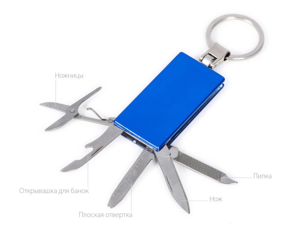 Брелок-мультитул на кольце в металлическом корпусе с заметным полем под нанесение. В комплекте нож, ножницы, пилка, плоская отвертка, открывашка для банок. • 4 самых нужных инструмента всегда под рукой • металлический корпус обеспечивает прочность, а значит, и долгую жизнь