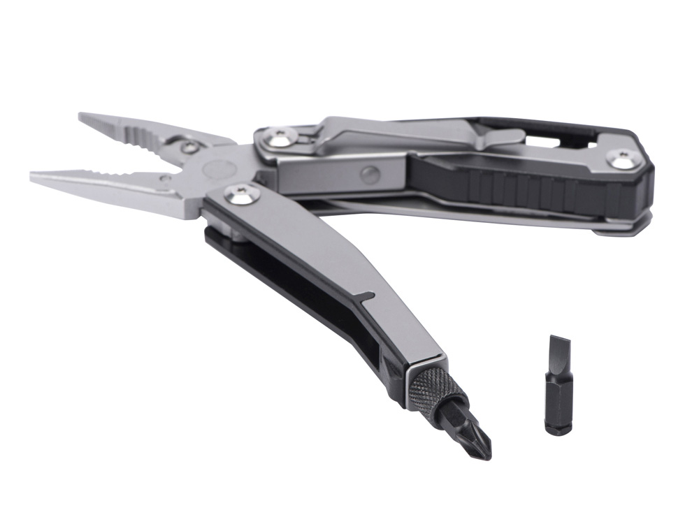Складной нож Scopus от roq выполнен в ассиметричном необычном дизайне, в его составе — среднего размера нож, пассатижи, плоская и крестовая отвертки (биты), шестигранный ключ 5 мм. Брендированный чехол в комплекте. • легко открывается и закрывается • фиксатор на упоре • клипса для ношения на поясе • компактный • нержавеющая сталь 420 марки