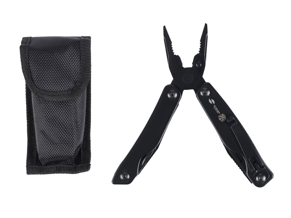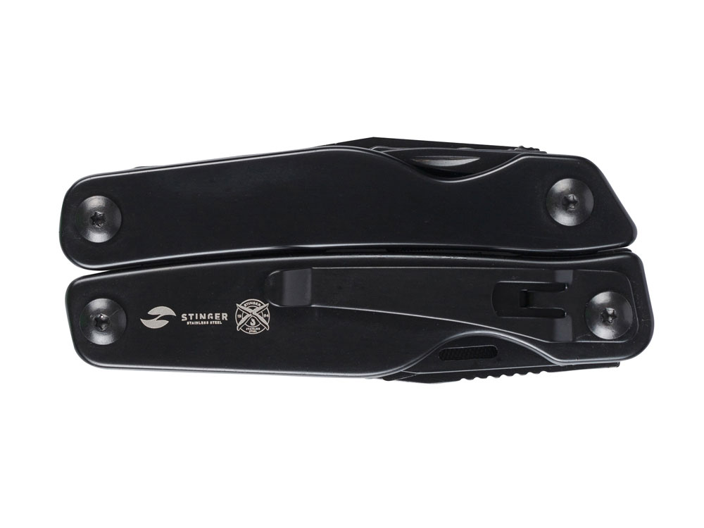 Мультитул Stinger, 100x40 мм, 11 функций, сталь, чёрный, в комплекте нейлоновый чехол