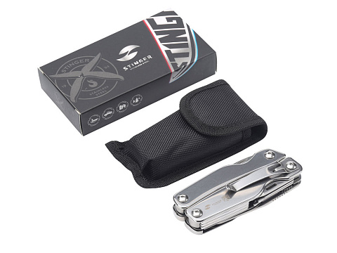 Мультитул Stinger, 100x45 мм, 11 функций, сталь, серебристый, в комплекте нейлоновый чехол