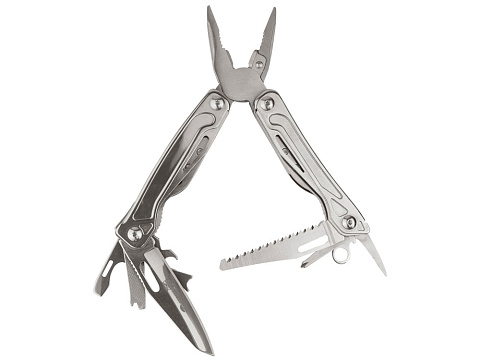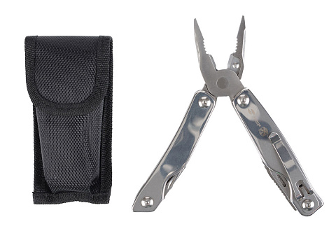 Мультитул Stinger, 100x45 мм, 11 функций, сталь, серебристый, в комплекте нейлоновый чехол купить оптом и в розницу с нанесением логотипа в Нижнем Новгороде