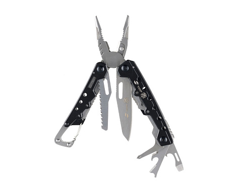 МНОГОФУНКЦИОНАЛЬНЫЙ ИНСТРУМЕНТ STINGER С НАБОРОМ ИЗ 12 ФУНКЦИЙ: 1. Острогубцы 2. Пассатижи 3. Кусачки 4. Лезвие большое плоское 5. Пила по дереву 6. Отвёртка крестовая 7. Отвёртка шлицевая большая 8. Инструмент для снятия изоляции 9. Стропорез 10. Открывалка для бутылок 11. Консервный нож 12. Карабин ХАРАКТЕРИСТИКИ: Материал инструментов: нержавеющая сталь 3Cr13 Материал рукояти: нержавеющая сталь Длина: 105 мм Ширина: 40 мм Вес: 261 г В комплекте: чехол из синтетического материала Упаковка: картонная коробка