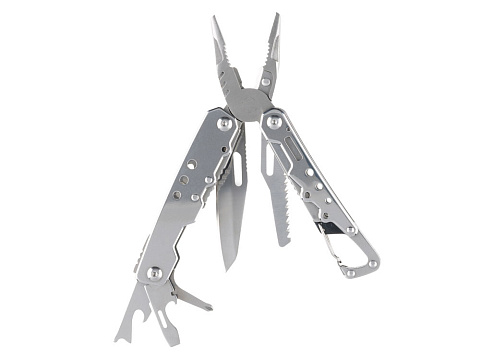 МНОГОФУНКЦИОНАЛЬНЫЙ ИНСТРУМЕНТ STINGER С НАБОРОМ ИЗ 12 ФУНКЦИЙ: 1. Острогубцы 2. Пассатижи 3. Кусачки 4. Лезвие большое плоское 5. Пила по дереву 6. Отвёртка крестовая 7. Отвёртка шлицевая большая 8. Инструмент для снятия изоляции 9. Стропорез 10. Открывалка для бутылок 11. Консервный нож 12. Карабин ХАРАКТЕРИСТИКИ: Материал инструментов: нержавеющая сталь 3Cr13 Материал рукояти: нержавеющая сталь Длина: 105 мм Ширина: 40 мм Вес: 261 г В комплекте: чехол из синтетического материала Упаковка: картонная коробка