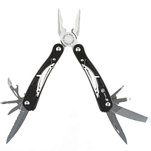 МНОГОФУНКЦИОНАЛЬНЫЙ ИНСТРУМЕНТ STINGER С НАБОРОМ ИЗ 13 ФУНКЦИЙ: 1. Острогубцы 2. Пассатижи 3. Кусачки 4. Лезвие большое 5. Лезвие с серрейторной кромкой 6. Отвёртка крестовая 7. Отвёртка шлицевая большая 8. Отвёртка шлицевая средняя 9. Отвёртка шлицевая малая 10. Открывалка для бутылок 11. Консервный нож 12. Шило 13. Напильник ХАРАКТЕРИСТИКИ: Материал инструментов: нержавеющая сталь 2Cr13 Материал рукояти: алюминий Длина: 104 мм Ширина: 45 мм Вес: 235 г В комплекте: чехол из синтетического материала Упаковка: складная картонная коробка