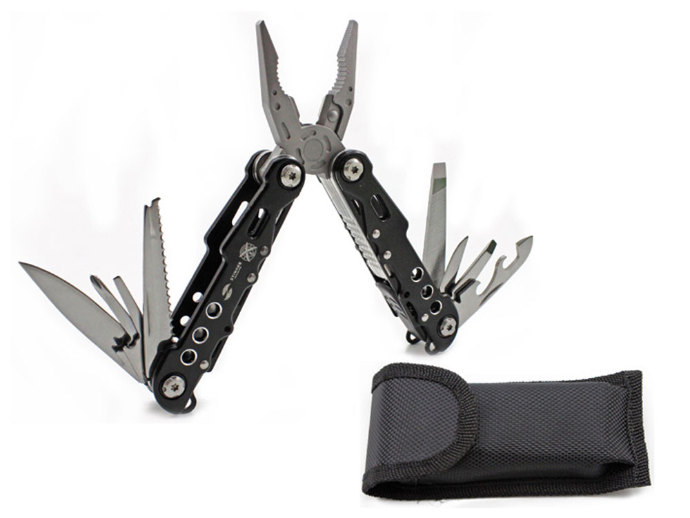МНОГОФУНКЦИОНАЛЬНЫЙ ИНСТРУМЕНТ STINGER С НАБОРОМ ИЗ 9 ФУНКЦИЙ: 1. Плоскогубцы 2. Лезвие большое плоское 3. Лезвие малое плоское 4. Пила 5. Напильник по дереву и металлу 6. Отвёртка крестовая 7. Отвёртка шлицевая большая 8. Отвёртка шлицевая малая 9. Открывалка для бутылок и консерв ХАРАКТЕРИСТИКИ: Материал инструментов: нержавеющая сталь Материал рукояти: нержавеющая сталь, алюминий с анодированным покрытием Длина: 105 мм Ширина: 45 мм Вес: 320 г В комплекте: чехол из синтетического материала Упаковка: складная картонная коробка