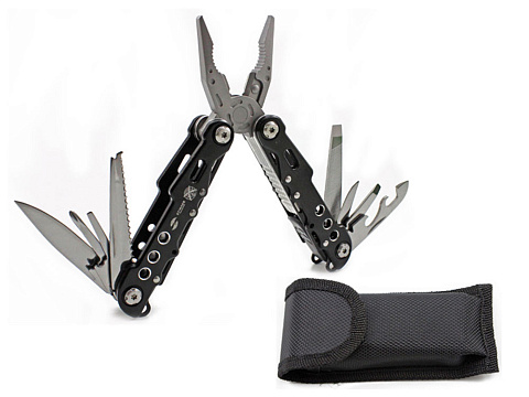 Мультитул Stinger, 105x45 мм, 9 функций, сталь/алюминий, чёрный, в комплекте нейлоновый чехол купить оптом и в розницу с нанесением логотипа в Нижнем Новгороде