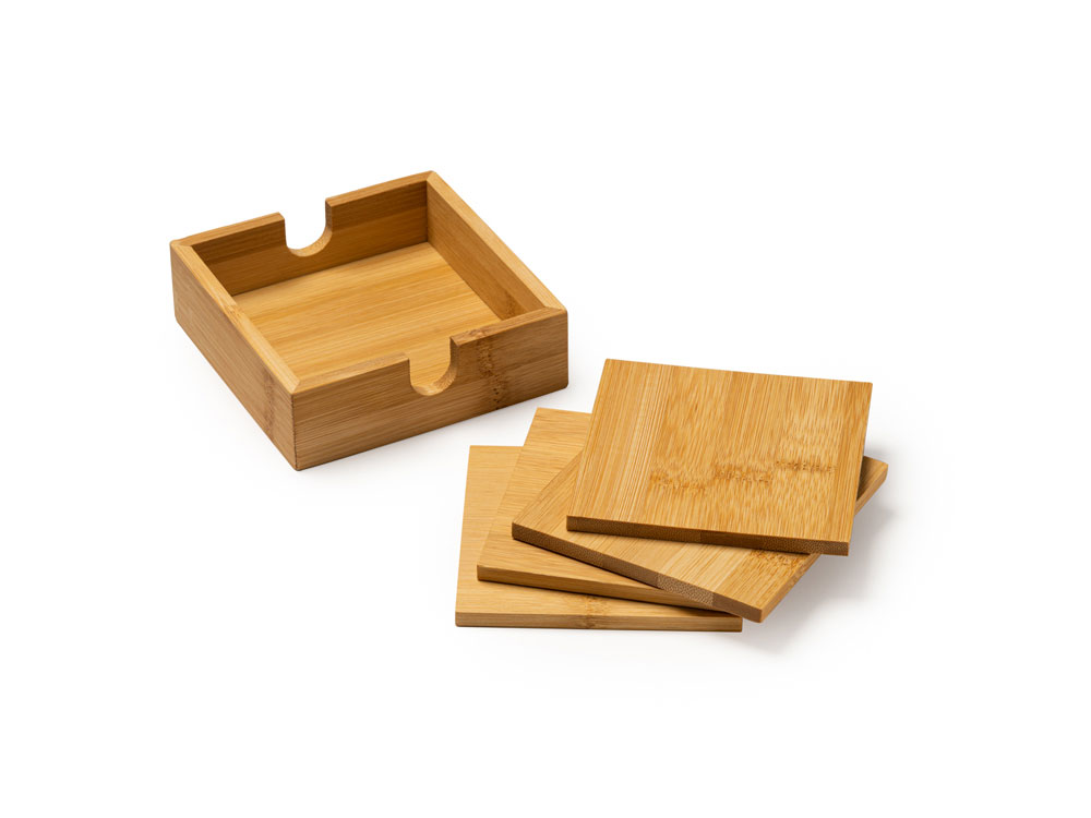 Набор из 4 бамбуковых подставок в элегантной бамбуковой коробке.