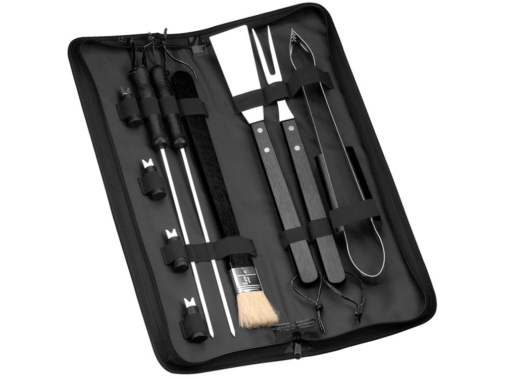 | Комплектность | лопатка - 1 шт., вилка - 1 шт., щипцы - 1 шт., шампура - 2 шт., кухонная кисть - 1 шт., держатели для кукурузы - 4 шт. |