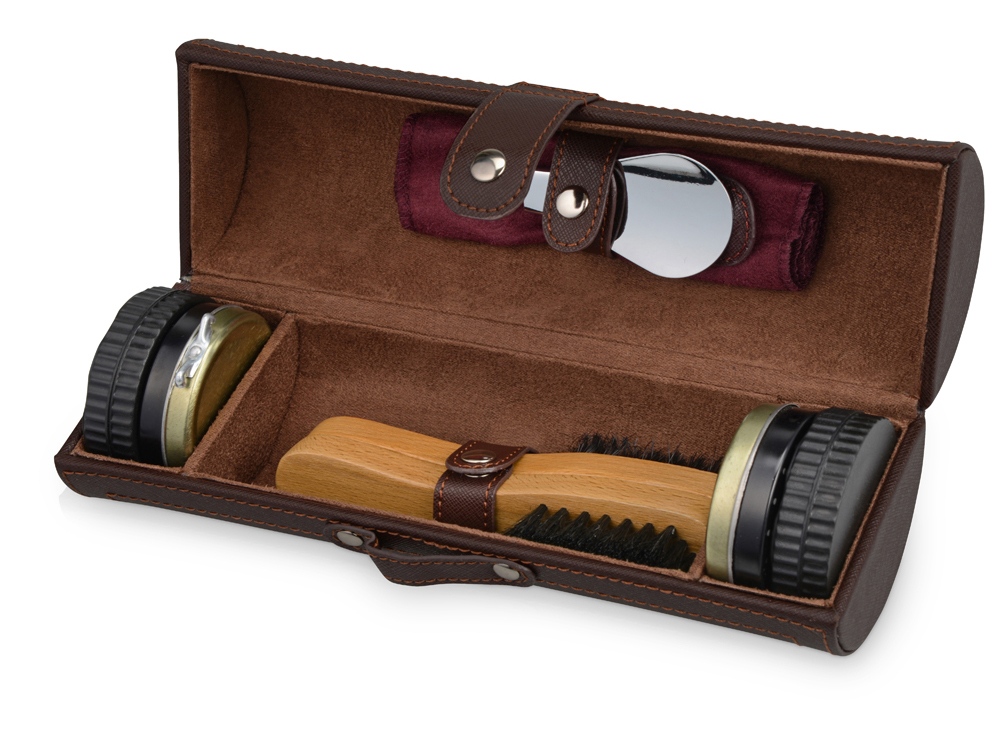 Подарочный набор для чистки обуви включает в себя 8 предметов, которые предназначены для поддержания чистоты вашей обуви. В комплект входят чистящие средства, так что не придется покупать их отдельно. Набор упакован в солидный футляр под кожу, который удобно брать в дорогу, в командировку. Набор представлен также и в других цветах.