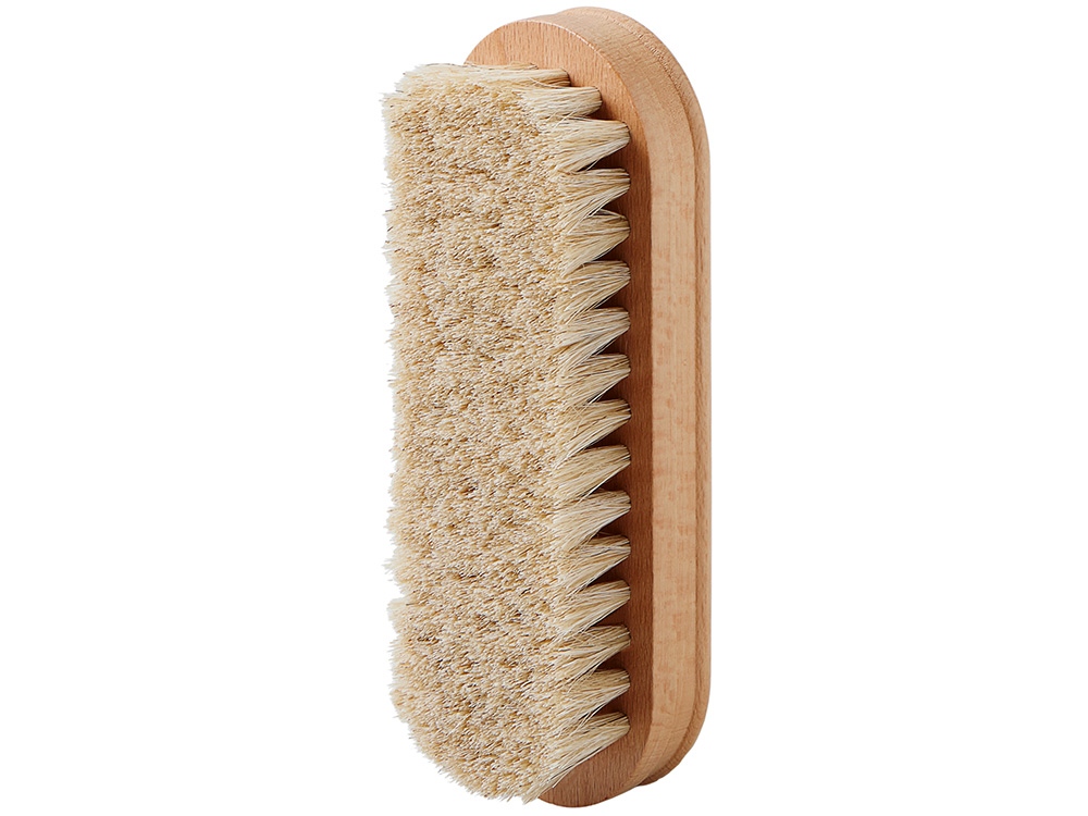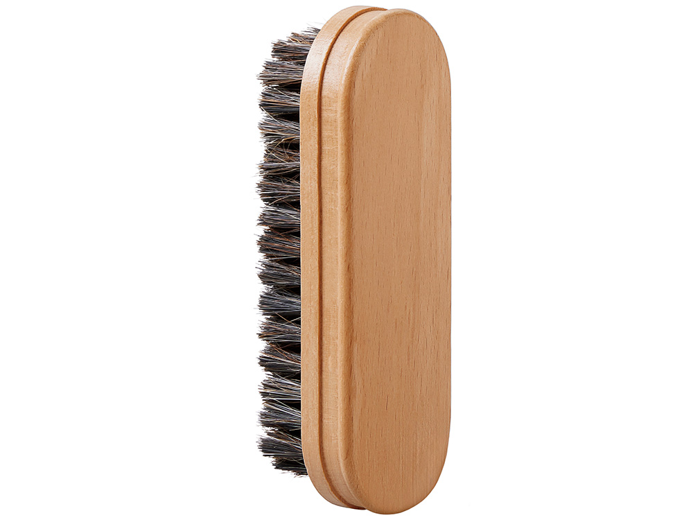 Ухоженная обувь без лишних усилий. Компактный набор для ухода за обувью в белой косметичке на молнии удобно брать в поездки и командировки. Внутри всё необходимое: прозрачный и чёрный крем, две щётки и салфетка из микрофибры. Функциональный и эстетичный аксессуар, который легко адаптируется под фирменный стиль компании.