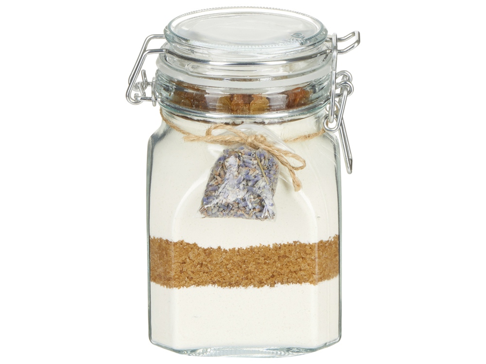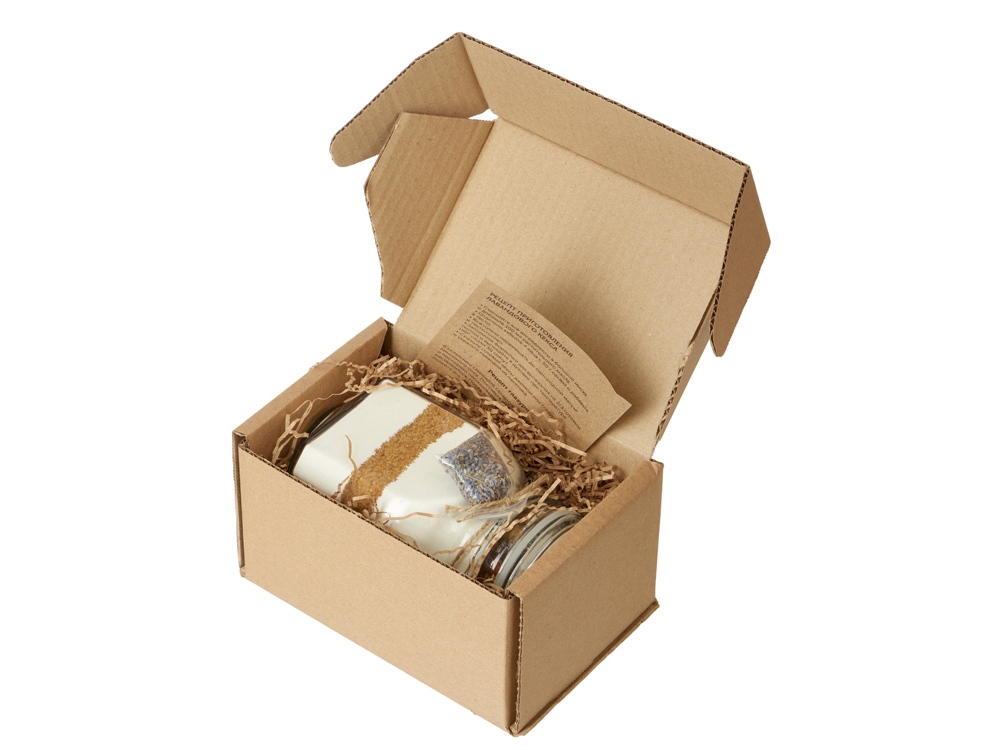 Комплектность банка 760 мл, смесь для приготовления лавандового кекса, пакетик с лавандой, рецепт, упаковочный материал