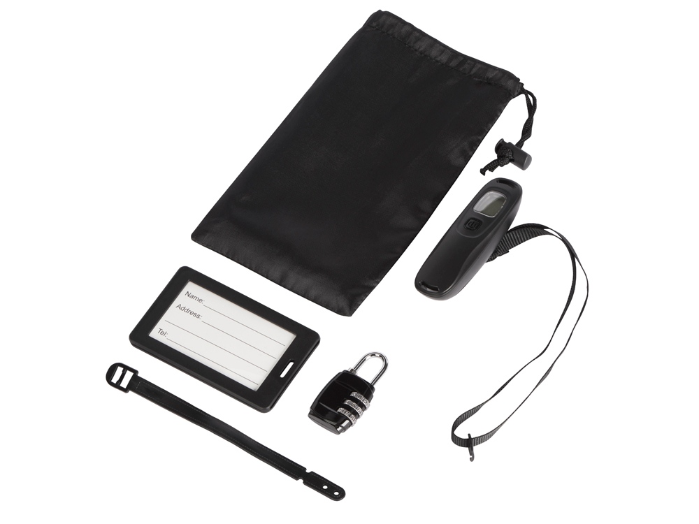 В набор входит всё самое необходимое в путешествии: багажные весы, бирка и замок. Особенно набор будет актуален, если вы летите самолётом. Ведь совсем неудобно узнавать о том, что есть перевес, когда уже приехали в аэропорт. Намного приятнее взвесить чемодан заранее, дома или в отеле, и переложить или убрать лишние вещи. Максимальная нагрузка весов до 50 кг. Если вы владелец достаточно строгого и классического чемодана, то бирка поможет не перепутать свой багаж с чужим. А ещё она очень приятная на ощупь. Замок же надёжно защитит ваши вещи от кражи. Все предметы сложены в компактный мешочек на затяжке, который удобно взять с собой, и он прекрасно подходит для брендирования. • Самое необходимое для сбора и безопасности багажа • Компактные размеры • Идея подарка людям, часто бывающим в командировках