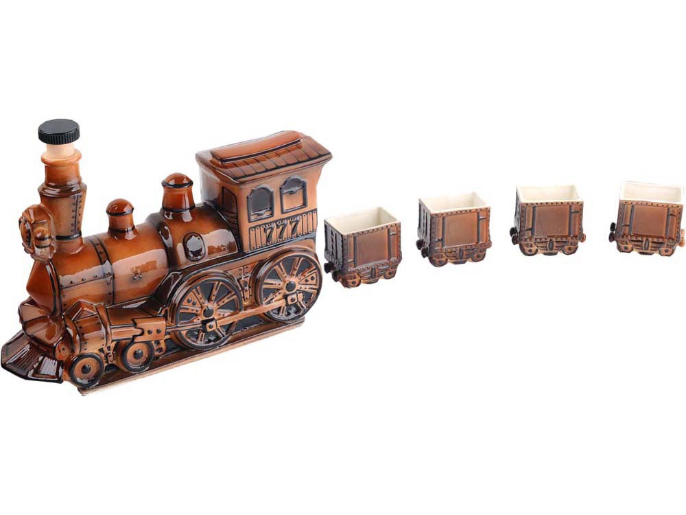 Если Ваша деятельность связана с железной дорогой, Вам будет особенно приятно видеть на своем праздничном столе набор для водки в виде паровоза и вагончиков. Паровоз выступает в роли штофа, а вагончики - в роли стопок. Причем это не массовое производство, а авторская работа. Внимание! Данное изделие относится к категории повышенной хрупкости. Для обеспечения его целостности и безопасной транспортировки настоятельно рекомендуется использование обрешетки. Обрешеточная упаковка является обязательной при доставке, и компания Oasis не несёт ответственности за повреждения, возникшие в результате ненадлежащей упаковки или транспортировки без обрешетки.