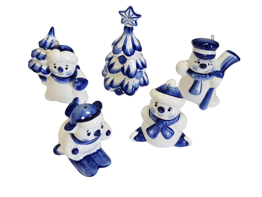 | Комплектность | ёлочка 9 см, снеговик с ёлкой 7 см. снеговик на лыжах 6,5 см, снеговик с метлой 6,5 см, снеговик 6 см |
