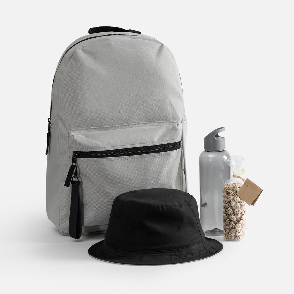 | Материал | рюкзак - полиэстер, 600D; панама - хлопок 100%, плотность 220 г/м²; бутылка - пластик, ПЭТ; ремувка - полиэстер 100%, металл |