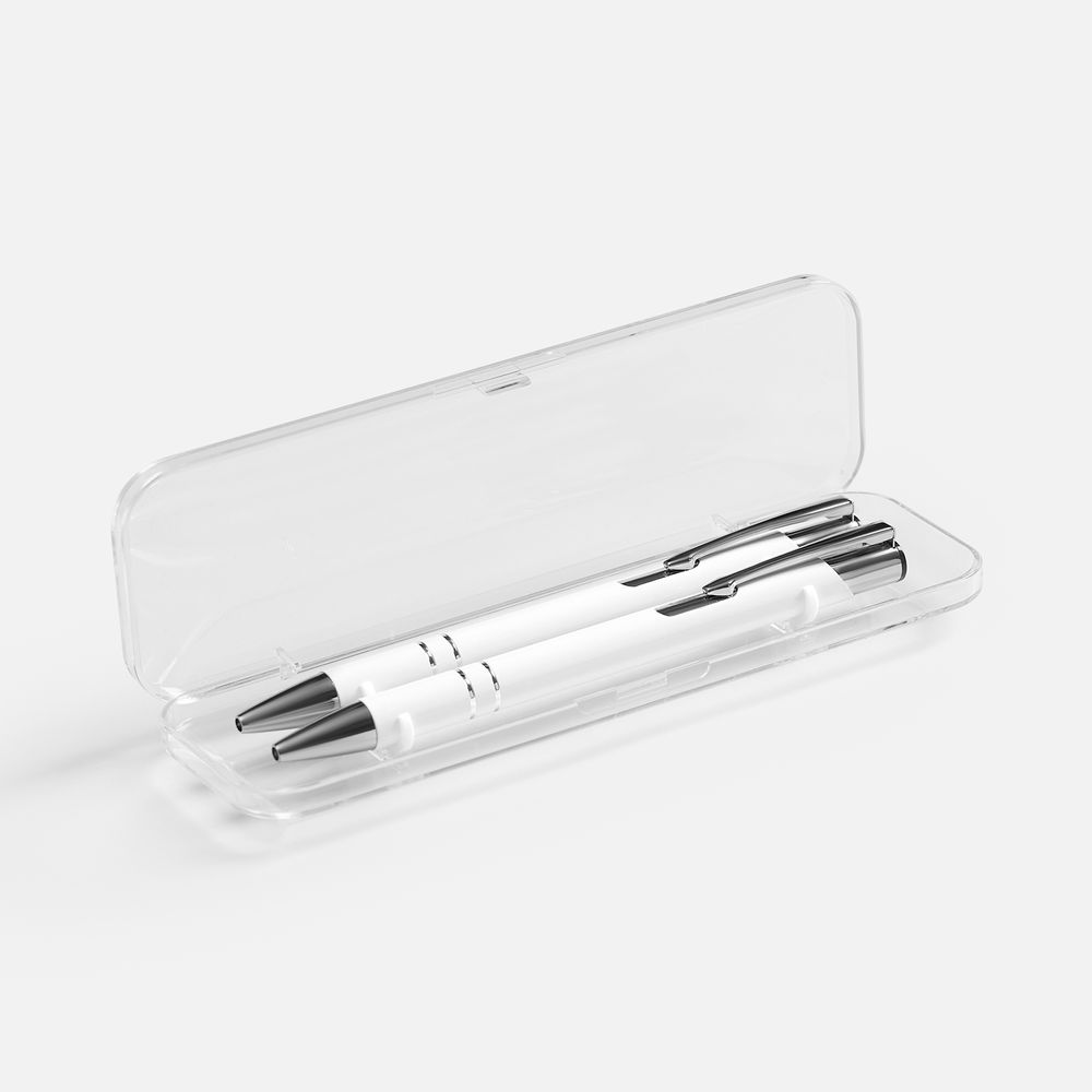 Набор из двух глянцевых ручек Keskus в прозрачном пластиковом футляре.