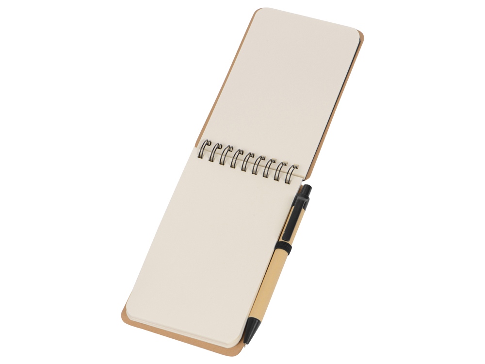 Компактный блокнот на пружине, с блоком на 70 нелинованных страниц в комплекте с шариковой ручкой с синими чернилами. Удобный, функциональный и доступный аксессуар на каждый день.