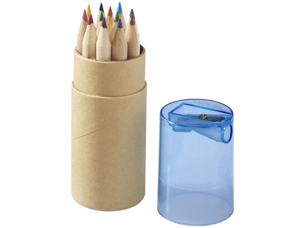 Набор из 12 маленьких карандашей в картонном стакане с точилкой.