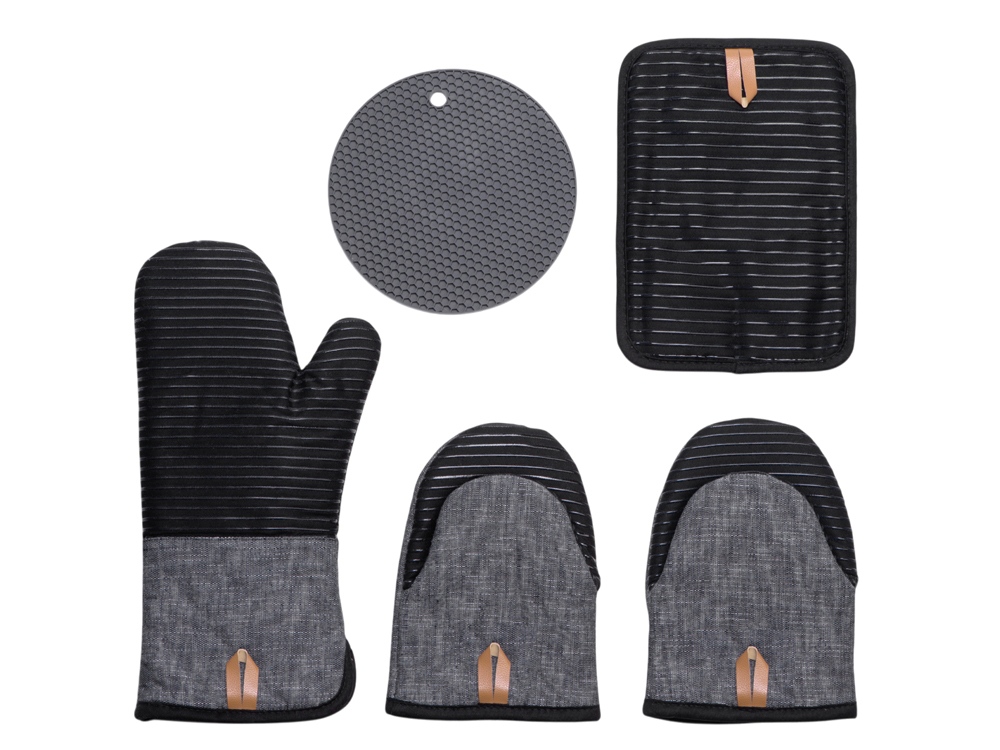 | Комплектность | прихватка рукавица, прихватка мини - 2шт, прихватка держатель для блюд, силиконовая подставка круглая |