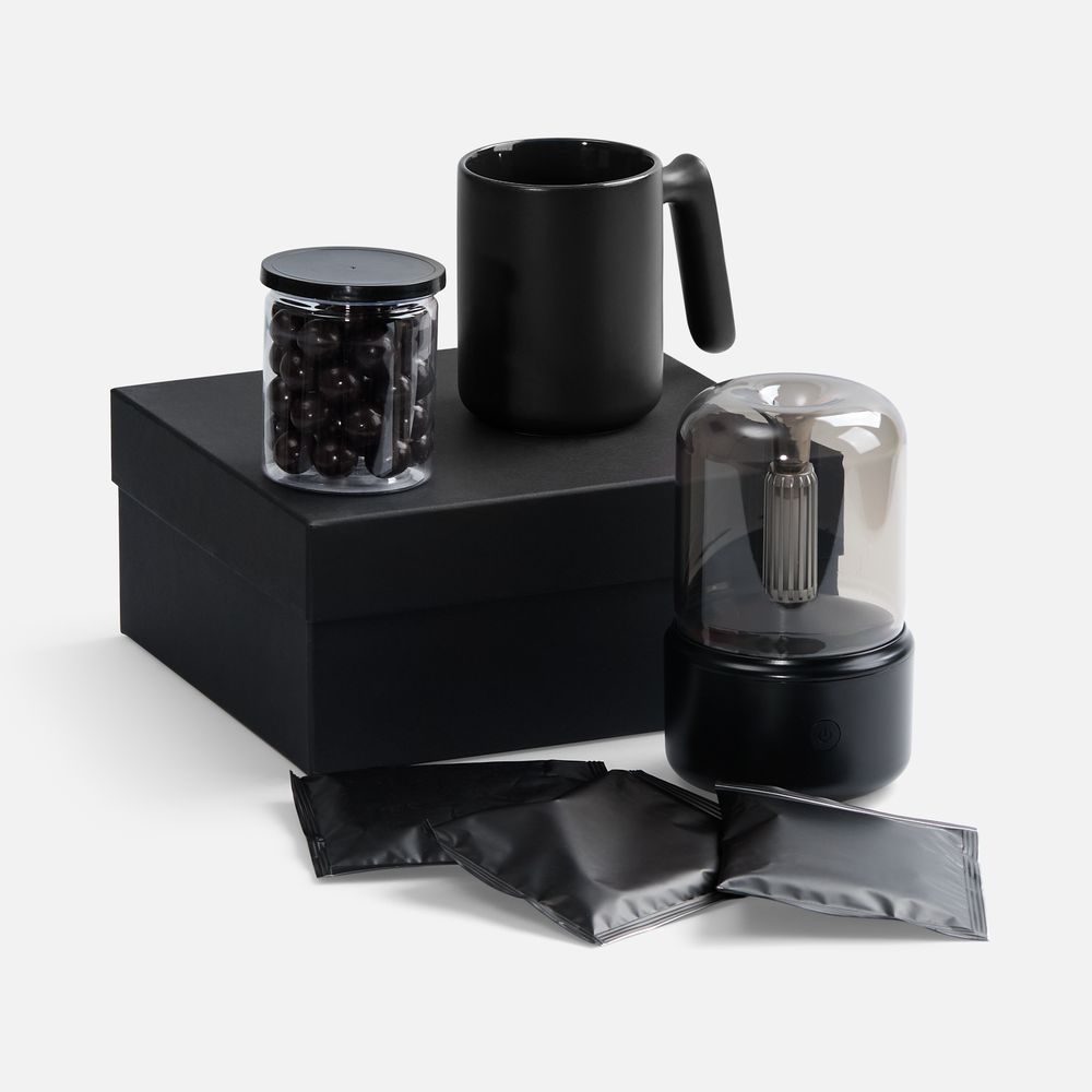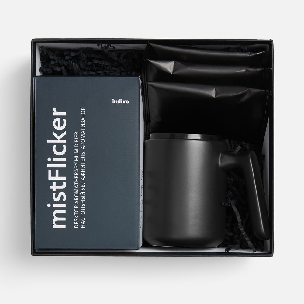 Набор «Микроклимат» создаст идеальную атмосферу — для бодрости или расслабления! Увлажнитель смягчает воздух, поможет снять усталость и мыслить ясно. В удобной керамической кружке Visari любимый напиток сохранит тепло, дрип-пакеты позволят легко приготовить вкусный кофе без лишних приборов, а фундук в шоколаде станет изящным завершением вашего ритуала наслаждения.