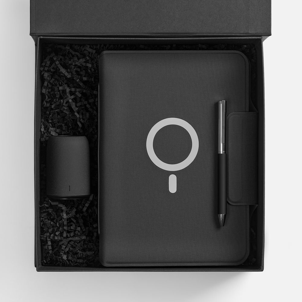• Органайзер с блокнотом и аккумулятором Oiro, черный