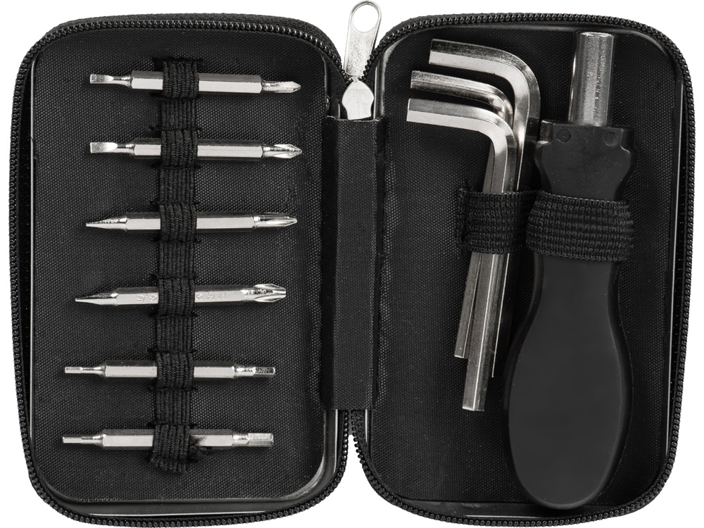 Этот компактный набор содержит 15 инструментов: 3 шестигранных ключа, 6 двухсторонних насадок с битами и ручки к ним. Весь набор компактно упакован в футляр с фиксирующими резинками, которые удерживают инструменты на створках. • 3 шестигранных ключа, 6 двухсторонних насадок с битами и ручки к ним • компактный футляр с удобной организацией пространства внутри • металлические компоненты выполнены из нержавеющей стали