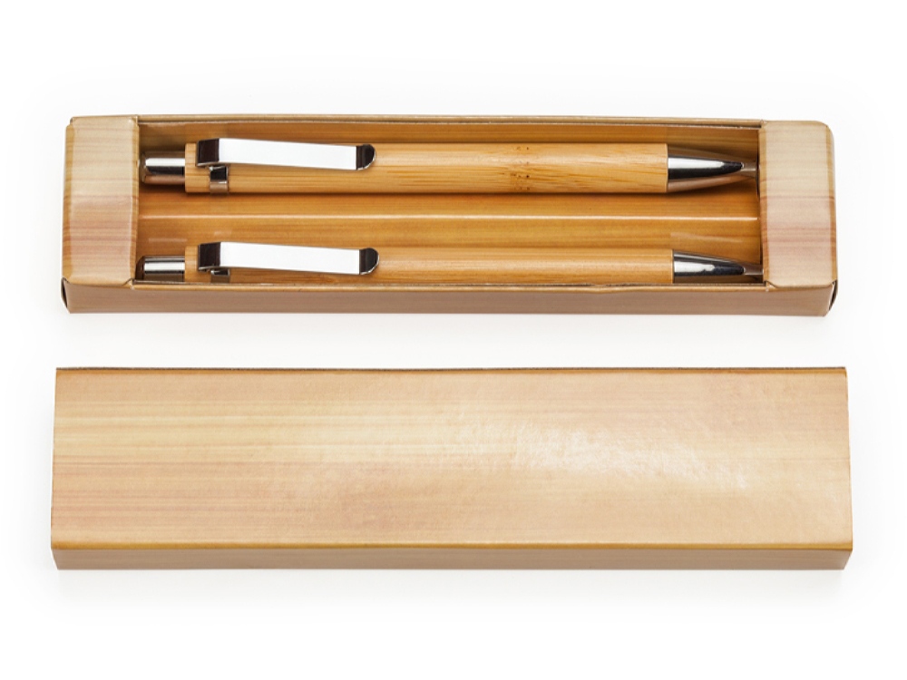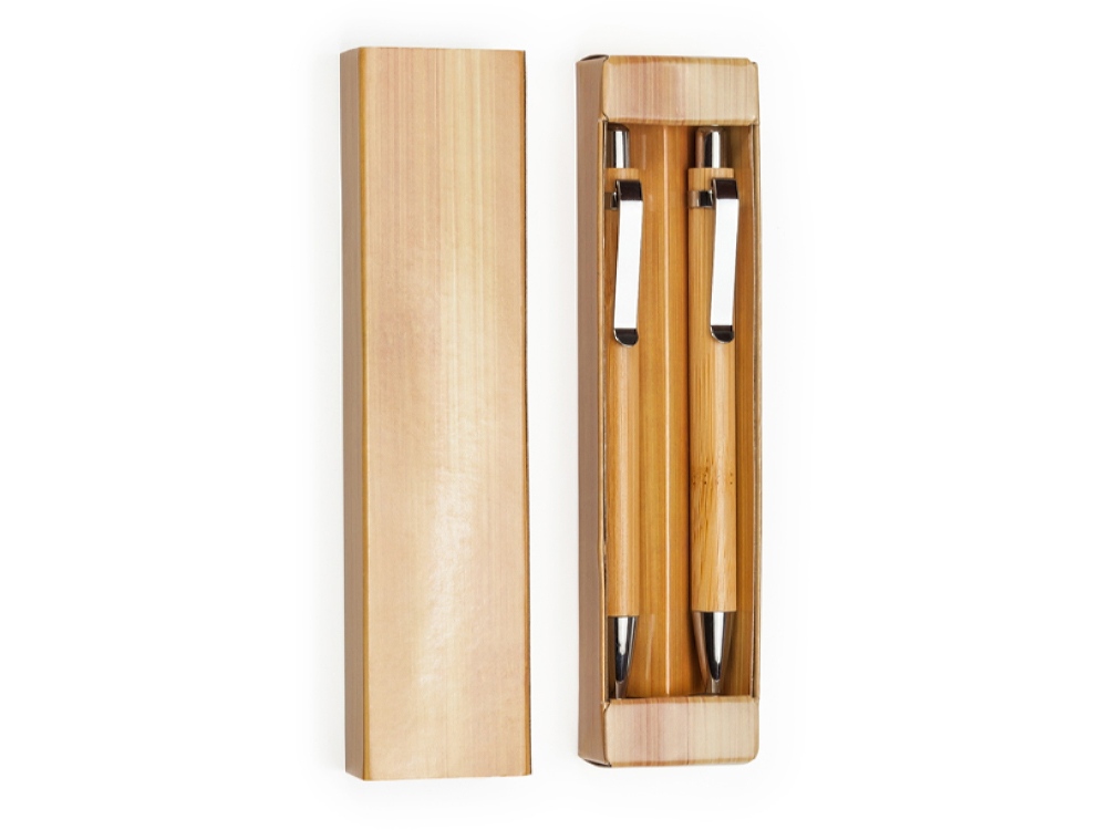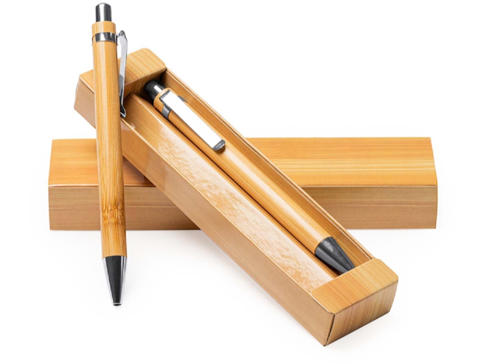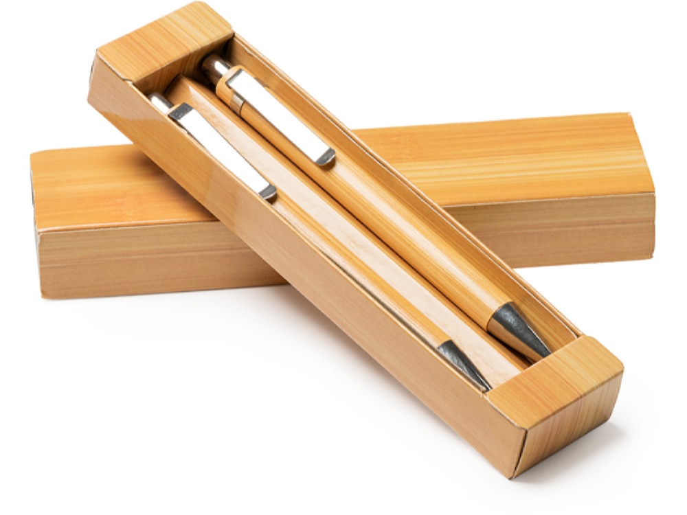 Набор из бамбуковой ручки и механического карандаша. Синие чернила.