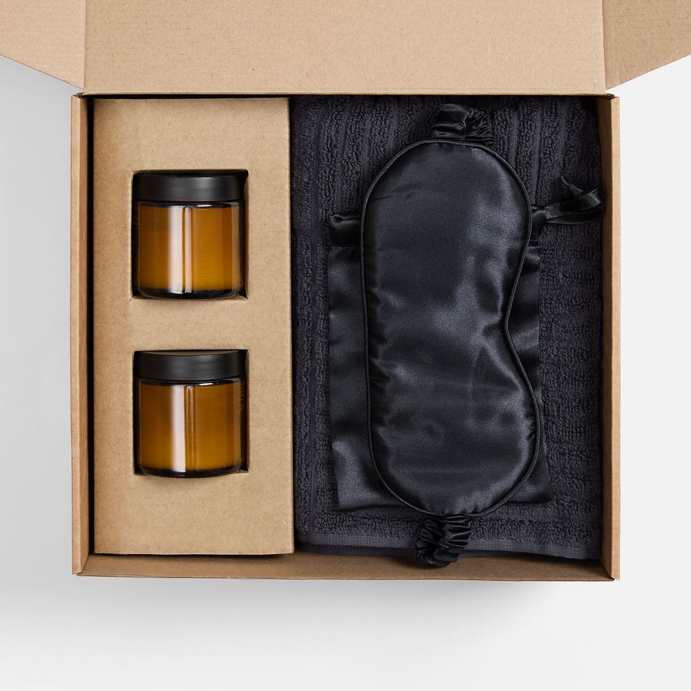 | Материал | полотенце - хлопок 100%, плотность 540 г/м²; подсвечник - стекло, крышка - пластик; свеча - парафин, соевый воск, парфюмерная композиция; маска - полиэстер 100%, сатин; коробка - микрогофрокартон, Т-23Е |