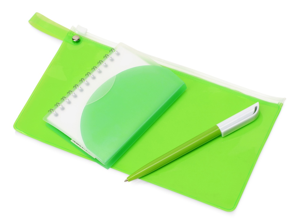 | Цвет товара | блокнот- прозрачный/зеленое яблоко, ручка- зеленое яблоко/белый, пенал- зеленое яблоко прозрачный |