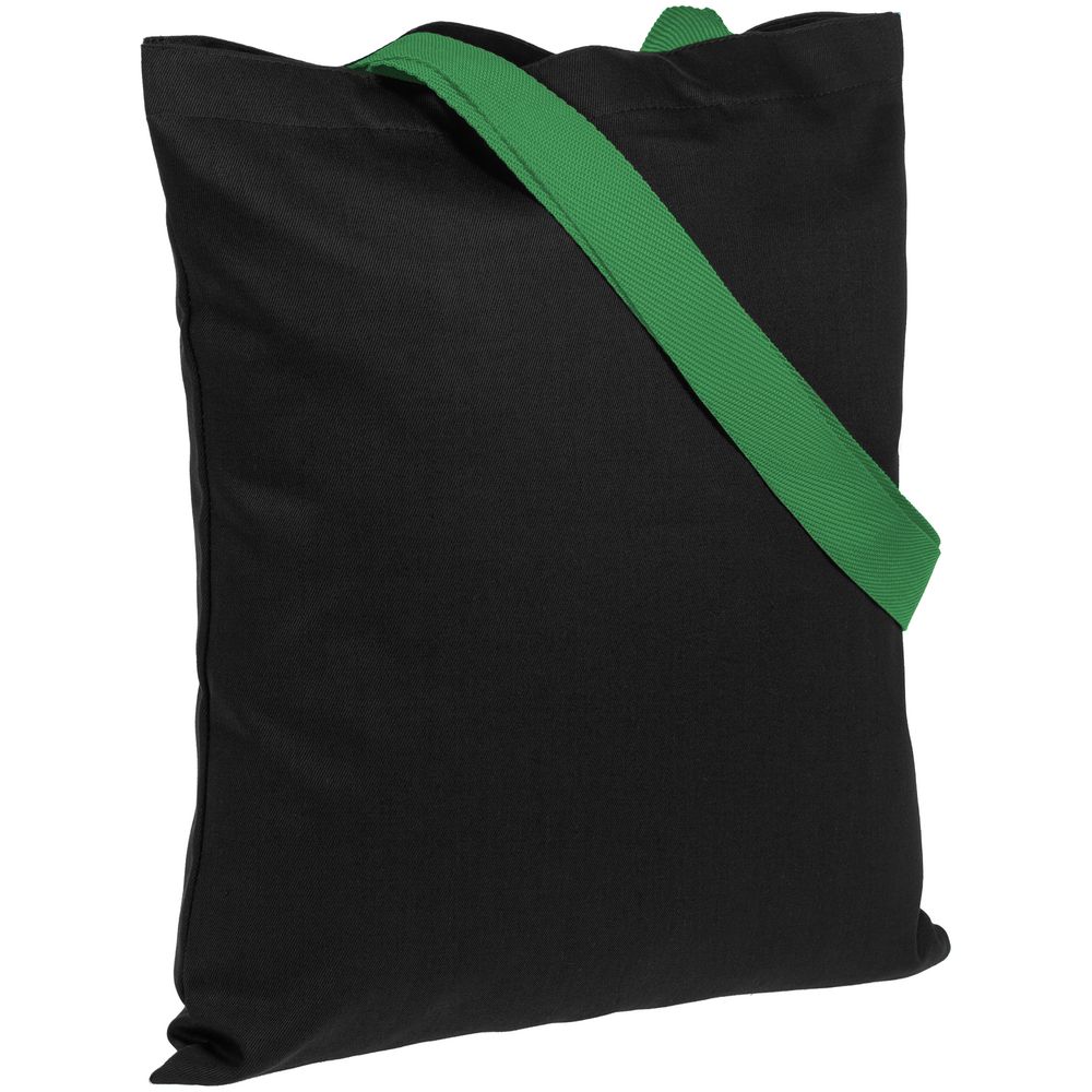 • Холщовая сумка BrighTone, черная с зелеными ручками