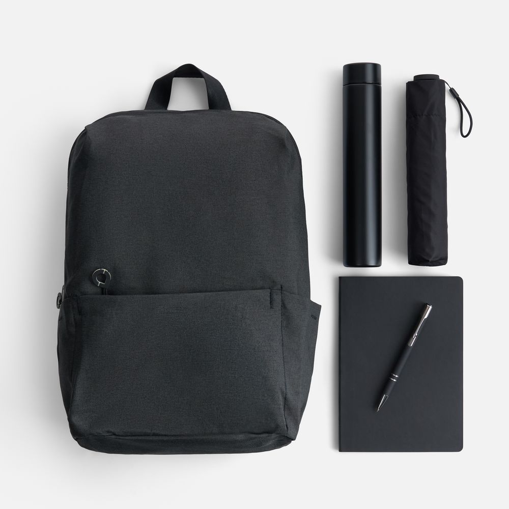 | Материал | рюкзак - полиэстер, 300D; зонт - полиэстер, 300T; спицы - стеклопластик; ручка - прорезиненный пластик; бутылка - нержавеющая сталь, 304 внутри, 201 снаружи; матовое покрытие; крышка - пластик; ручка - металл; покрытие софт-тач |