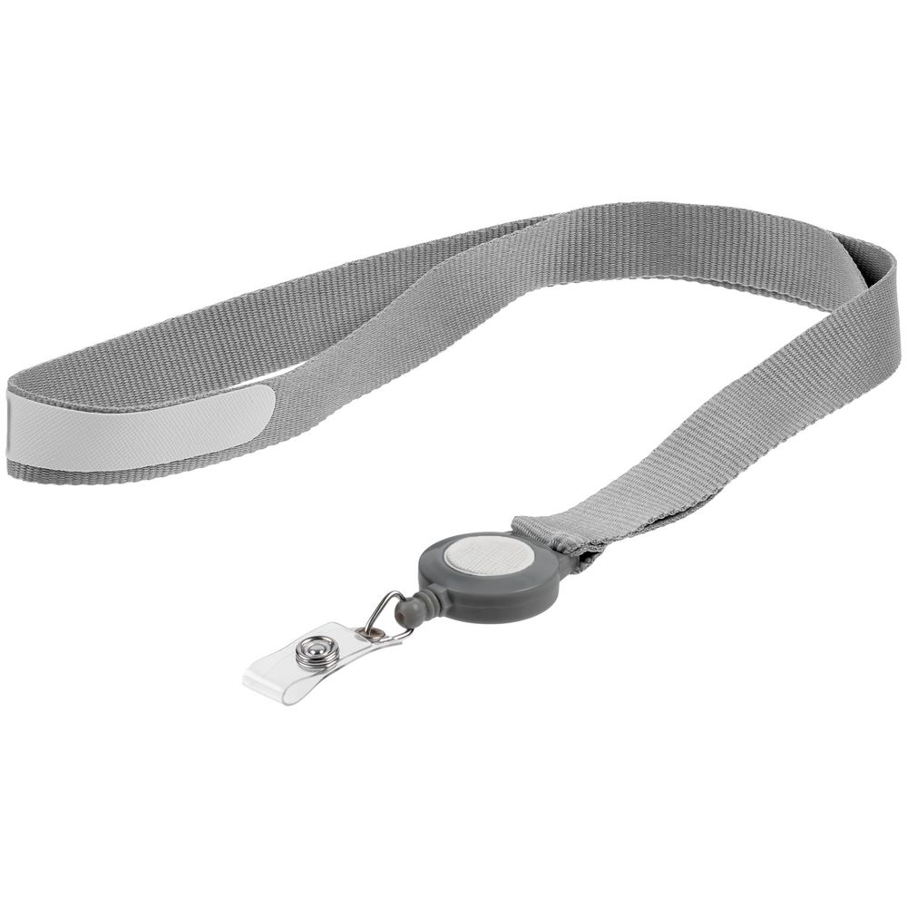 • Лента для бейджа с ретрактором Devon, серая с белым