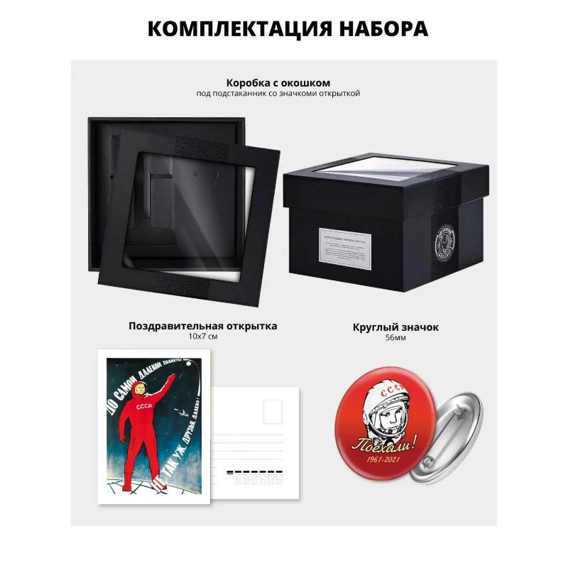 Комплектация Подстаканник + Стакан + Открытка + Значок + Подарочная упаковка