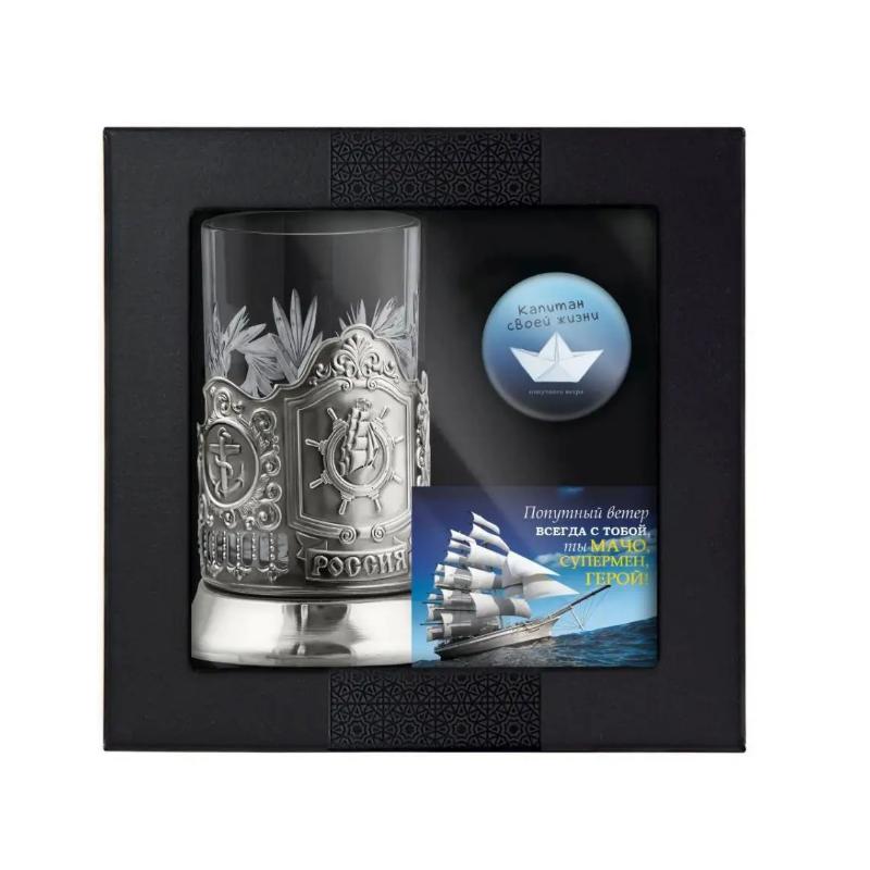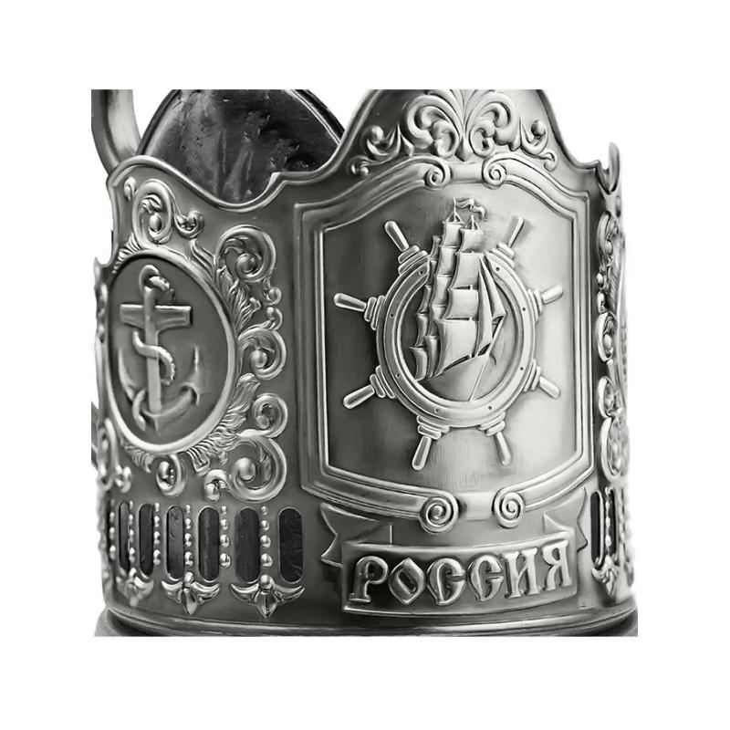 Купить Набор подарочный с подстаканником "Штурвал" никелированный с чернением в интернет-магазине в Нижнем Новгороде