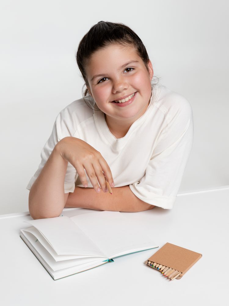 Размеры 9x9x0,9 см; карандаш 8,5x0,7 см