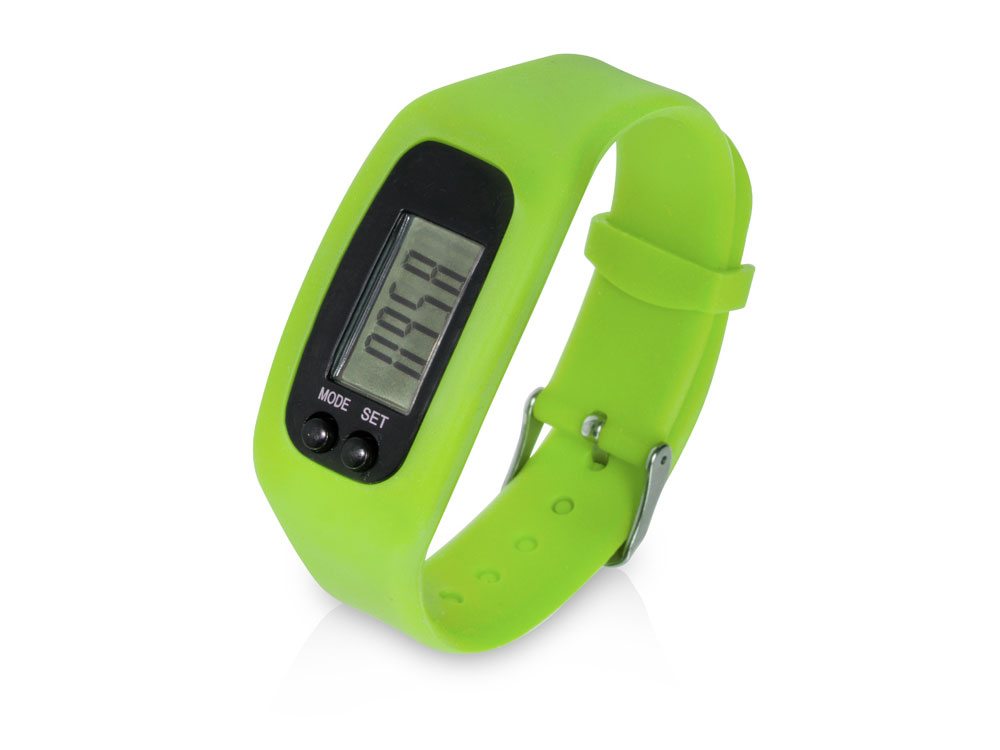 Наручные часы с возможностью отображения времени, калорий, шагов и дистанции. Есть переключение между метрической и британской системами измерений. На силиконовом ремешке можно сделать гравировку. Часы упакованы в пластиковую коробку, которую можно использовать для нанесения. Батарейка в комплекте.