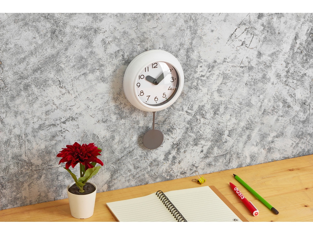 Настенные часы с маятником Pendulum, белый купить оптом и в розницу с нанесением логотипа в Нижнем Новгороде