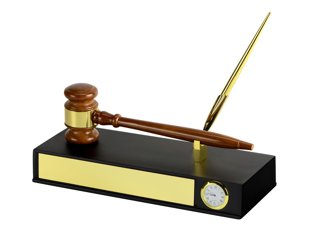 | Комплектность | подставка с часами 29,3 х 11,7 х 8 см, молоток d4,5 х 7,5 х 26,2 см, ручка шариковая d1 х 17,6 см, шильд 22,2 х 3,5 см |