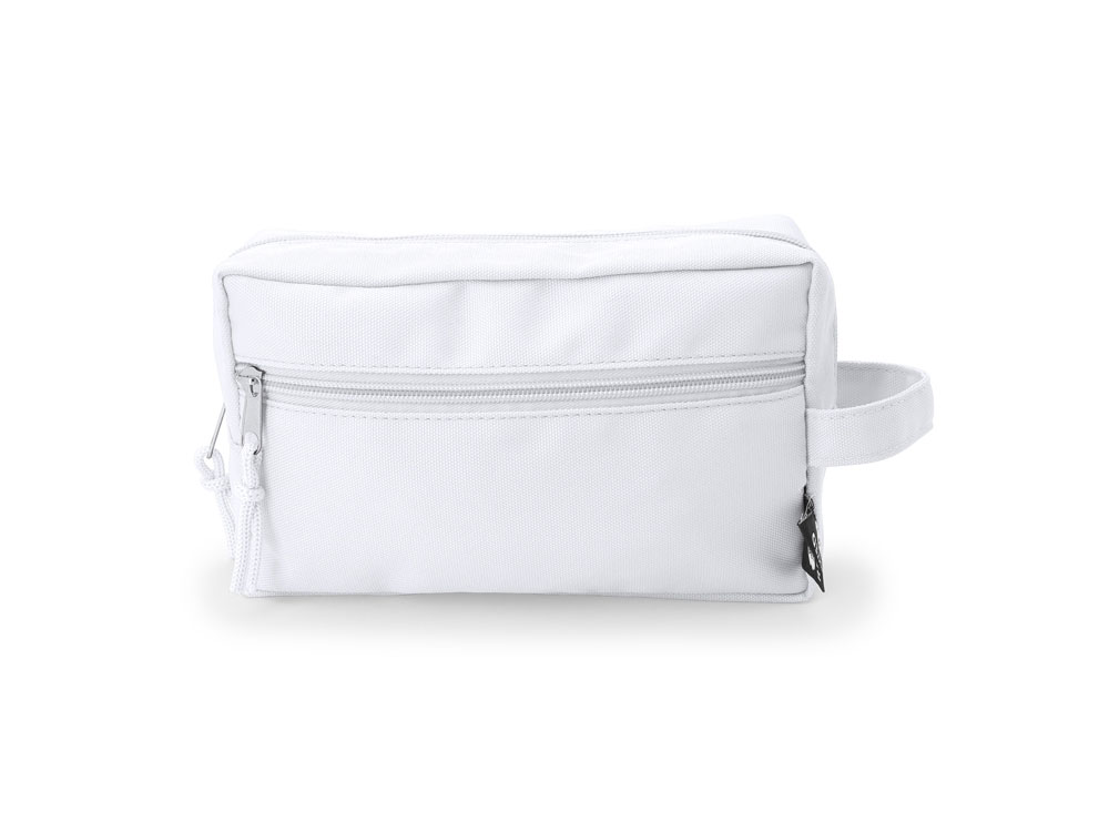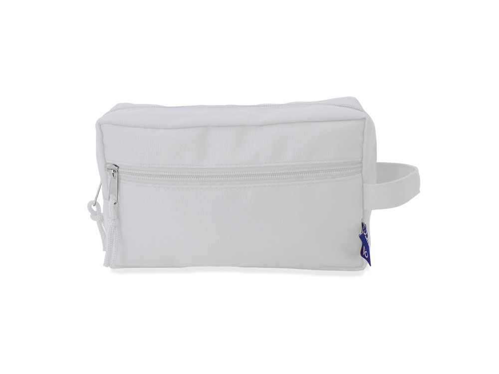 Несессер с двумя отделениями на молнии и ремешком для переноски в тон. Внешняя этикетка с логотипом RPET.