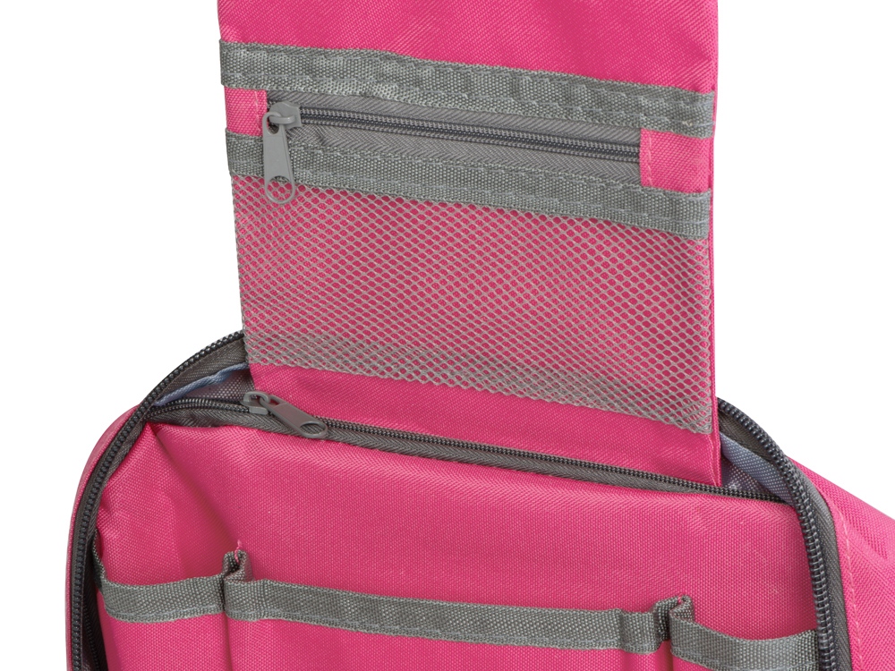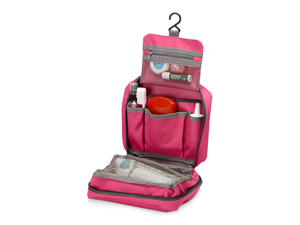 Несессер для путешествий – неотъемлемый атрибут комфортных поездок, служащий для компактного хранения различных мелочей. Аксессуар также пригодится для походов в спортзал и просто поддержания порядка дома. Это превосходный подарок любителю путешествий, а также отличный вариант промо-презента для рекламных кампаний. Большая поверхность позволяет нанести логотип или слоган фирмы. • Вместительное пространство с двумя большими отделениями и несколькими карманами дает возможность эргономично распределить весь дорожный арсенал косметических и туалетных принадлежностей. • Крючок позволяет подвесить аксессуар, например, в уборной поезда или гостиничном номере, в случае отсутствия полки. • Оптимальные размеры, не превышающие формат А4, позволяют легко разместить несессер в любом чемодане или дорожной сумке.