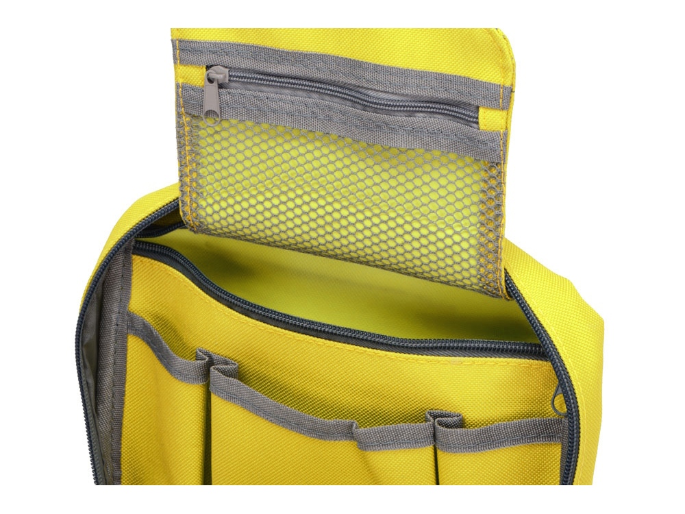 Несессер для путешествий – неотъемлемый атрибут комфортных поездок, служащий для компактного хранения различных мелочей. Аксессуар также пригодится для походов в спортзал и просто поддержания порядка дома. Это превосходный подарок любителю путешествий, а также отличный вариант промо-презента для рекламных кампаний. Большая поверхность позволяет нанести логотип или слоган фирмы. • Вместительное пространство с двумя большими отделениями и несколькими карманами дает возможность эргономично распределить весь дорожный арсенал косметических и туалетных принадлежностей. • Крючок позволяет подвесить аксессуар, например, в уборной поезда или гостиничном номере, в случае отсутствия полки. • Оптимальные размеры, не превышающие формат А4, позволяют легко разместить несессер в любом чемодане или дорожной сумке.