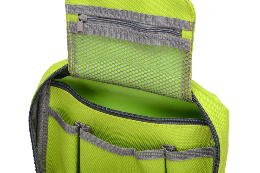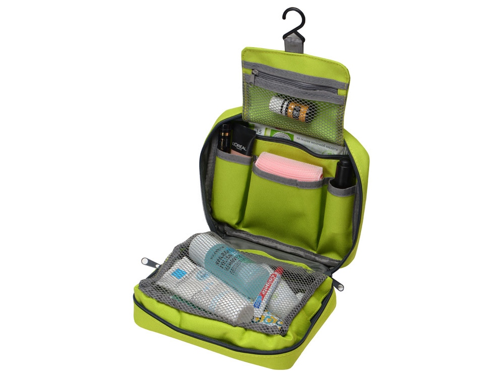 Несессер для путешествий – неотъемлемый атрибут комфортных поездок, служащий для компактного хранения различных мелочей. Аксессуар также пригодится для походов в спортзал и просто поддержания порядка дома. Это превосходный подарок любителю путешествий, а также отличный вариант промо-презента для рекламных кампаний. Большая поверхность позволяет нанести логотип или слоган фирмы. • Вместительное пространство с двумя большими отделениями и несколькими карманами дает возможность эргономично распределить весь дорожный арсенал косметических и туалетных принадлежностей. • Крючок позволяет подвесить аксессуар, например, в уборной поезда или гостиничном номере, в случае отсутствия полки. • Оптимальные размеры, не превышающие формат А4, позволяют легко разместить несессер в любом чемодане или дорожной сумке.