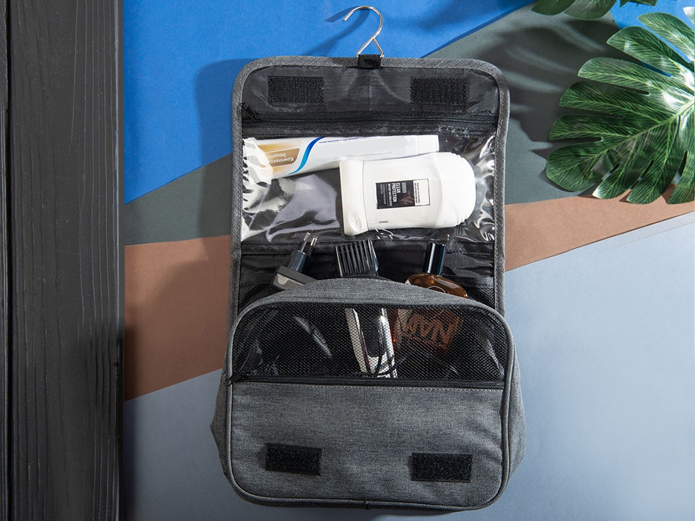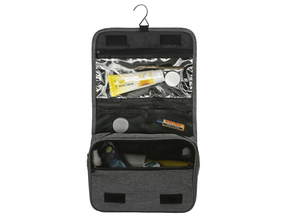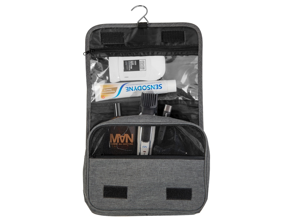 Несессер Planar оснащен металлическим крючком для подвешивания, который в сложенном виде убирается внутрь и не будет вам мешать. Для переноски несессер имеет ручку снаружи, а еще вы найдете плоский вместительный карман на его задней стороне. Клапан несессера закрывается на липучки и имеет три кармана — большой на молнии из прозрачного материала, который легко моется, даже в случае, если флакон изнутри разгерметизировался, и два из сетки, куда можно положить необходимые мелочи и которые удобнее использовать в висящем виде. Основное отделение несессера — объемное, с сетчатой вставкой для обзора, на молнии, имеет также наружный непрозрачный карман на молнии. Внутри этого отделения — два боковых объемных кармана под флаконы или баночки и два на стенке, а также есть укрепляющая накладка на дно, которую при необходимости можно отодвинуть для экономии места. Несессер является частью линейки Planar, благодаря чему его можно включать в состав сетов дорожных аксессуаров в едином стиле. - легко и быстро раскладывается - прозрачный карман из ПВХ для флаконов с жидкостями, который легко очистить - выполнен в стиле серии Planar, можно комбинировать с другими изделиями серии - множество разноплановых карманов под разное содержимое и цели - крючок для подвешивания - вместительный Инструкция по уходу: Не стирать в стиральной машине, не отбеливать, не гладить, предпочтительнее протирать мягкой тканью. Не является водонепроницаемым изделием.