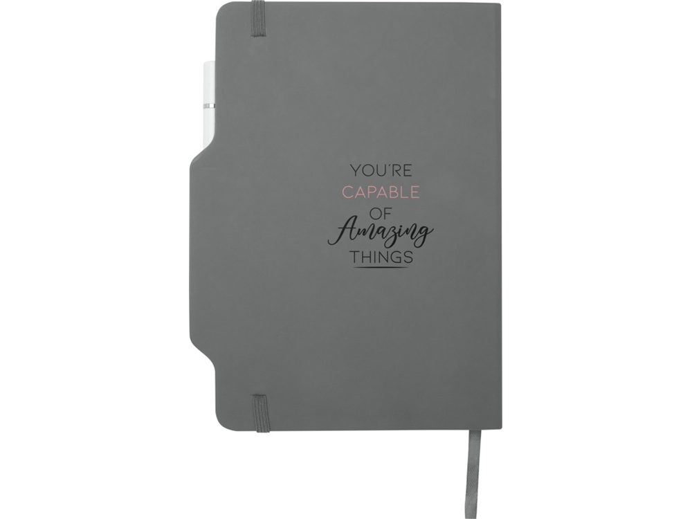 Блокнот Nexus формата A5 в твердой обложке с ручкой/карандашом, с 80 кремовыми линованными листами бумаги плотностью 70 г/м², с закругленными углами, эластичной застежкой и ленточным маркером. Ручка двухсторонняя: одна сторона — ручка с черными чернилами, а другая — карандаш. Длина непрерывной линии ручки: 1000 метров. Размер пера: 1,00 ММ. FSC certified paper, PU Plastic.