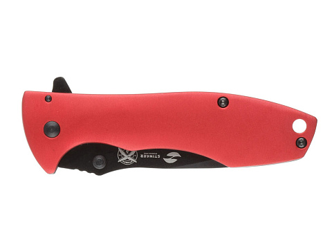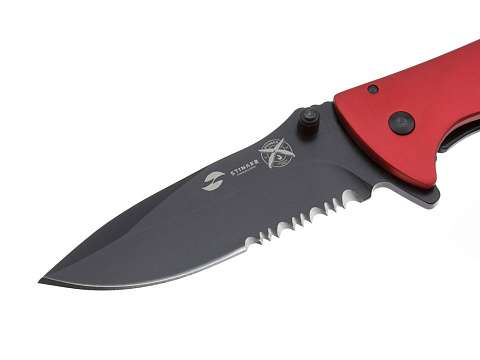 Нож складной Stinger, 80 мм, (чёрный), материал рукояти: сталь/алюминий (чёрно-красный) купить оптом и в розницу с нанесением логотипа в Нижнем Новгороде