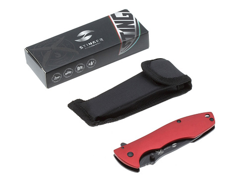 Нож складной Stinger, 80 мм, (чёрный), материал рукояти: сталь/алюминий (чёрно-красный)