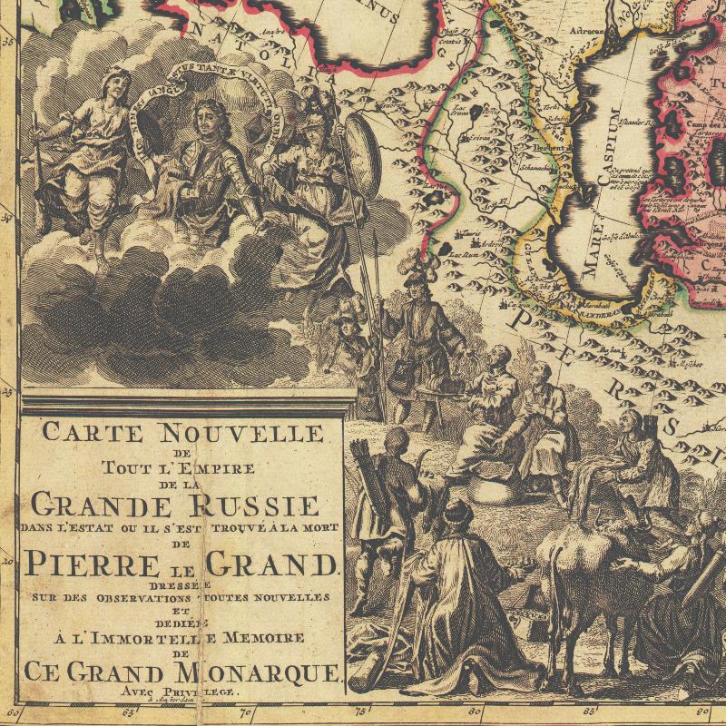 • «Новая карта всей империи Великой России», посвящена памяти Петра Великого (Петра Алексеевича Романова, 1672 – 1725 г.г.)и выпущена в Амстердаме Райнером и Джошуа Оттенсами в 1730 г.