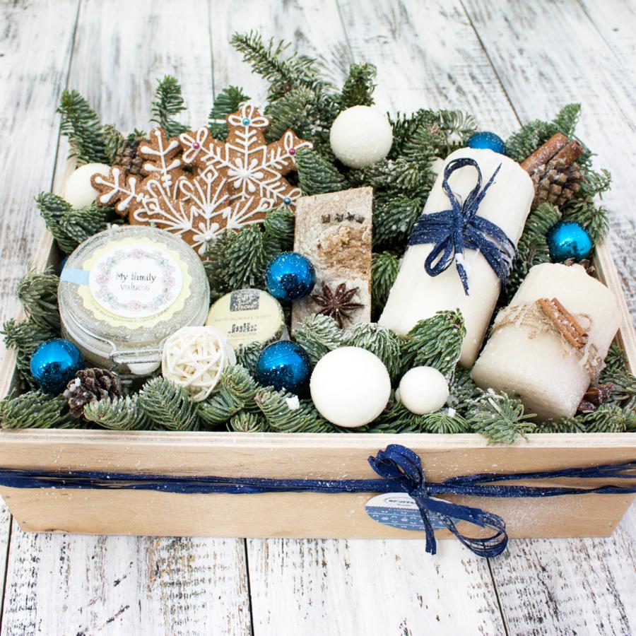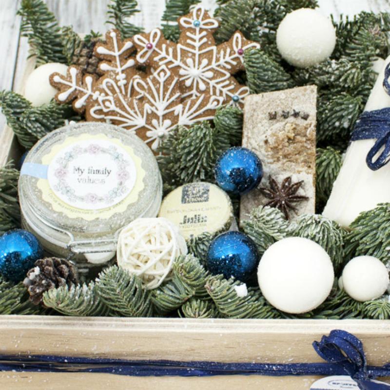 | Состав | мед-суфле Peroni, мед Nectaria, мыло ручной работы, свечи 2 шт, шишки, имбирное печенье, шарики. |