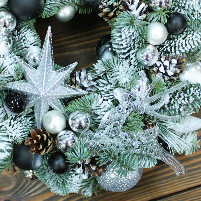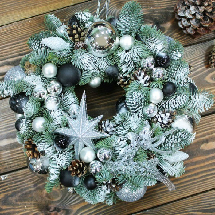 | Состав | ветки пихты, шишки, новогодние игрушки, шарики. |